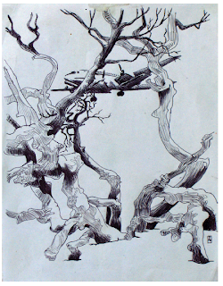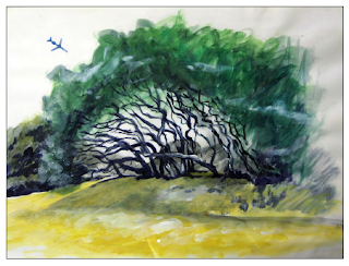 Des dessins, des gouaches, in situ, dans les bois alentour, à Noirmoutier, ailleurs, retravaillées dans l'atelier.